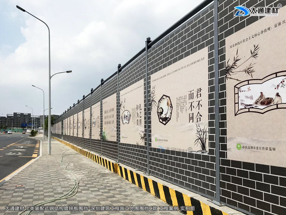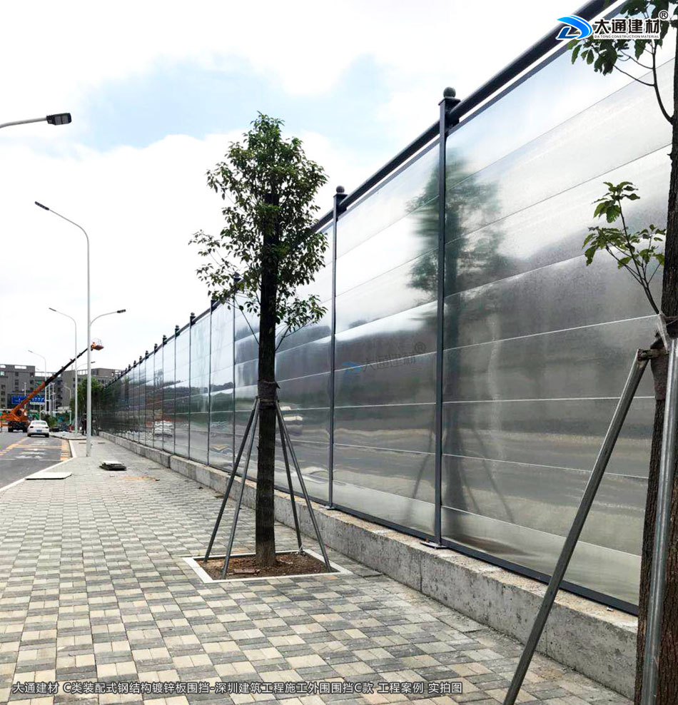 深圳市大通建材生產(chǎn)的C類裝配式鍍鋅鋼結(jié)構(gòu)圍擋4米高定制款,把深圳市龍華區(qū)建筑工程施工現(xiàn)場圍起來,為施工安全保駕護(hù)航。