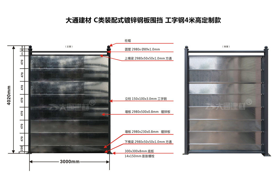 了解更多關(guān)于“大通建材 C類鋼結(jié)構(gòu)鍍鋅鋼圍擋”生產(chǎn)定制、配送安裝、零售批發(fā)的價格及規(guī)格等詳情,請致電13826562448梁先生