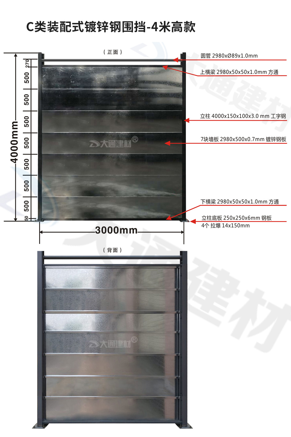 若想了解更多“大通建材 C類鍍鋅鋼圍擋定制款”規(guī)格與價(jià)格等詳情 請(qǐng)致電13826562448梁經(jīng)理