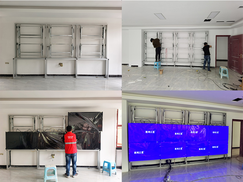 信弘工程師根據(jù)用戶的具體使用需求以及現(xiàn)場安裝環(huán)境,為其量身定制了一套落地式前維護安裝,超清數(shù)據(jù)化拼接大屏,為了融合現(xiàn)場環(huán)境,墻面與屏體形成一體,采用3×4,12塊三星原裝1.7mm55寸液晶拼接屏和一套2×3,6塊三星原裝1.7mm55寸液晶拼接屏來搭建,為用戶展示實時水庫數(shù)據(jù)。