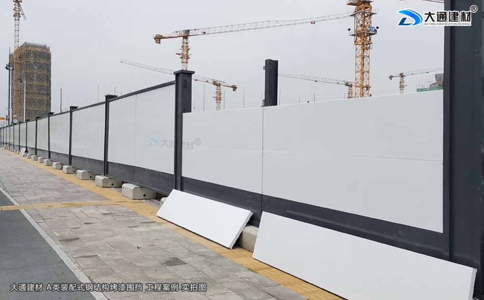 專業(yè)圍擋供應(yīng)廠家深圳市大通建材有限公司,為東莞市麻涌鎮(zhèn)工程施工項(xiàng)目單位提供的A類裝配式鋼結(jié)構(gòu)烤漆工地施工圍擋半龍骨款及圍擋基礎(chǔ)塊等隔離防護(hù)產(chǎn)品,應(yīng)用到工程項(xiàng)目中效果如下圖展示。